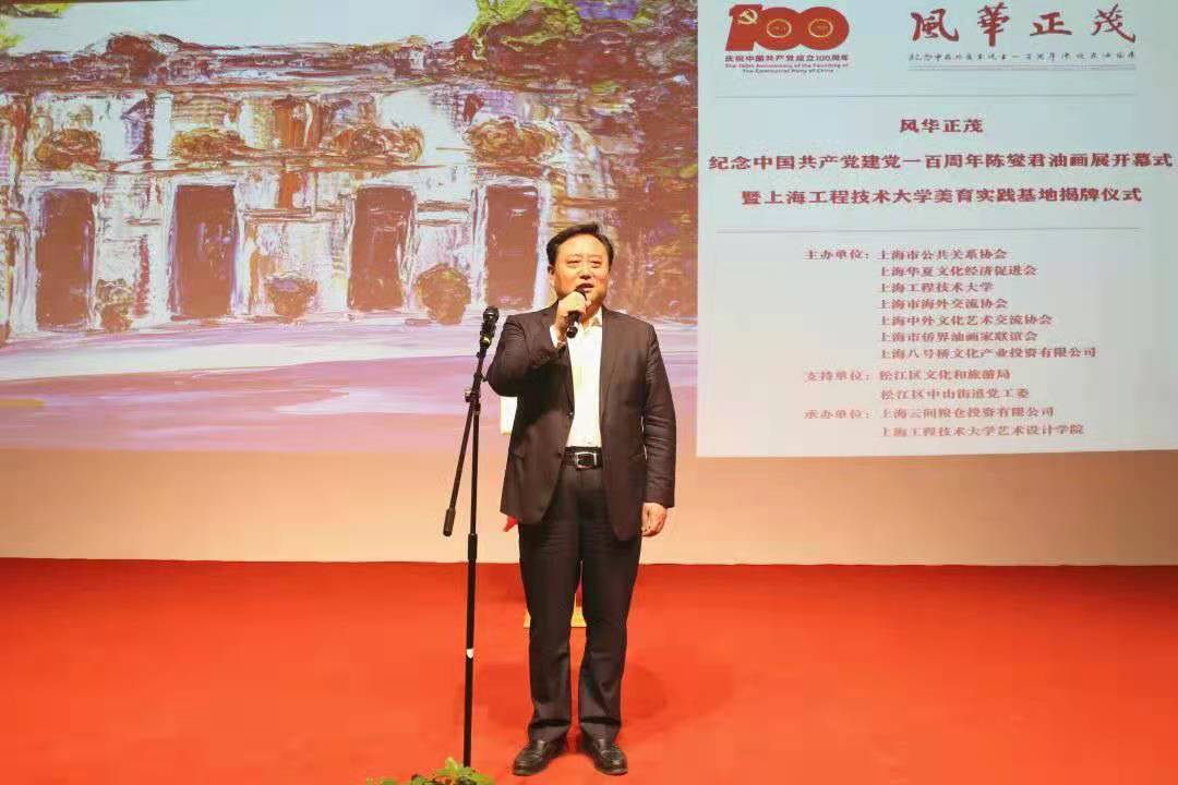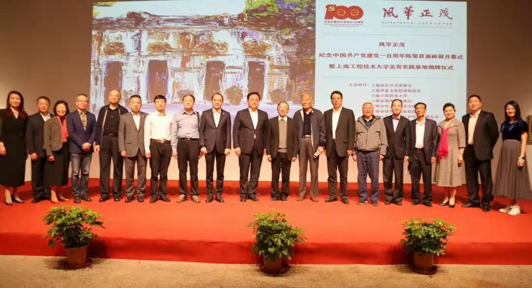 为深入推进党史学习教育,学习贯彻习近平新时代中国特色社会主义思想,以及习总书记考察清华大学时提出的 “美术、艺术、科学、技术相辅相成、相互促进、相得益彰,要把美术成果更好服务于人民群众的高品质生活需求。要增强文化自信,以美为媒。”的重要指示精神,近日,“风华正茂——纪念中国共产党建党一百周年陈燮君油画展开幕式暨上海工程技术大学美育实践基地揭牌仪式”在云间粮仓·云间艺术馆隆重举行。本次活动由上海市公共关系协会、上海华夏文化经济促进会、上海工程技术大学等单位主办,松江区文化和旅游局、松江区中山街道党工委支持,上海云间粮仓投资有限公司、上海工程技术大学艺术设计学院承办。