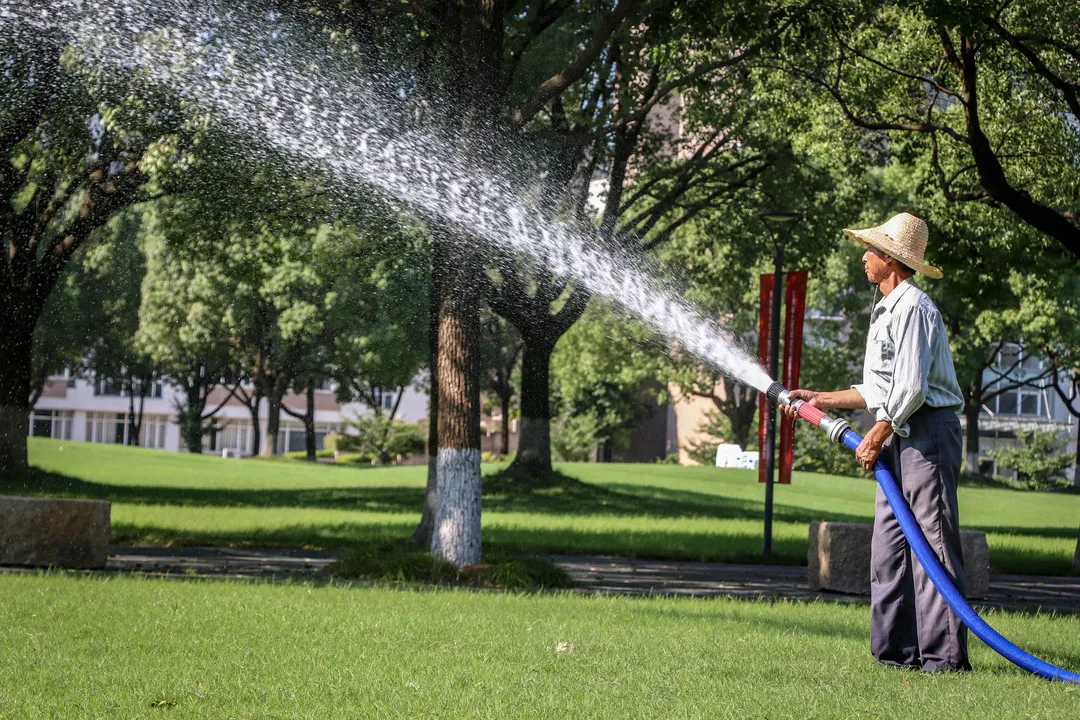 晨光熹微,教学区域的绿化养护机械已经开始作业。在近30万平方米的绿地上浇水、除杂草、除虫、修枝,随处可看见绿化工人们辛勤工作的身影。艳阳之下,草坪一片碧绿,鲜花盛开,美如画的校园美景背后,是园林养护者的辛勤汗水。