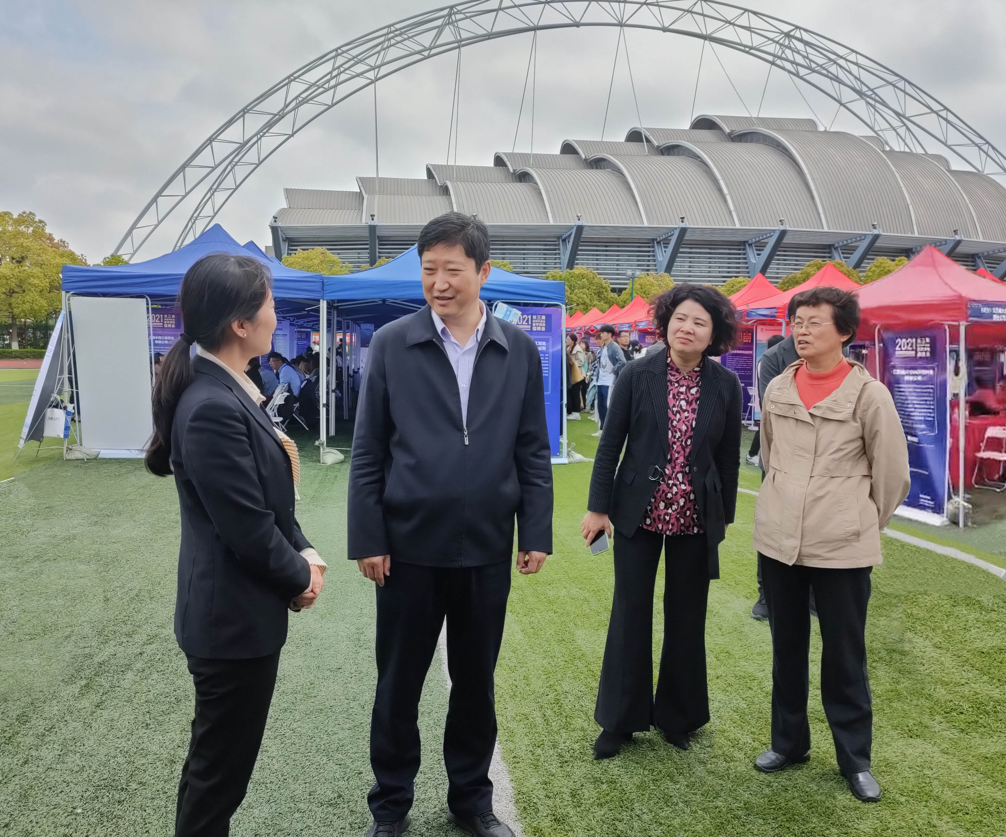 4月21日至23日,2021长三角高校毕业生就业论坛暨春季现场招聘会系列活动在松江大学城举行。本次系列活动由上海市教育委员会指导,上海市学生事务中心、上海市人才服务中心和我校主办,江苏省高校招生就业指导服务中心、浙江省教育发展中心、安徽省大中专毕业生就业指导中心联合举办。教育部全国高等学校学生信息咨询与就业指导中心副主任宁小华,上海市教委副主任倪闵景,校党委书记李江,校党委副书记、校长俞涛,校党委副书记、副校长朱晓青出席了此次活动。来自全国的200余位省市、高校就业中心主任及企业人力资源负责人参加了此次活动。