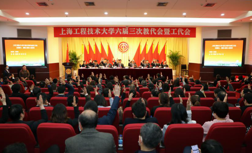 会上,全体正式代表表决通过了《上海工程技术大学二级教职工代表大会实施办法(修订草案)》《上海工程技术大学教职工聘用与聘期考核管理办法(修订草案)》以及《上海工程技术大学六届三次教代会暨工代会决议》。