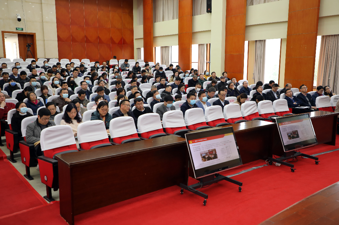 李江同志作党史学习教育动员部署讲话。他指出,这次党史学习教育恰逢建党百年的重大时刻,处于“两个一百年”奋斗目标历史交汇的关键节点,是牢记初心使命、推进中华民族伟大复兴历史伟业的必然要求,是坚定信仰信念、在新时代坚持和发展中国特色社会主义的必然要求,是推进党的自我革命、永葆党的生机活力的必然要求。就扎实开展好党史学习教育,李江书记从三个方面进行了动员部署:一要深刻领会开展党史学习教育的重大意义,不断增强学党史铸党魂的政治自觉。要着力在“学党史、悟思想、办实事、开新局”这12个字上下功夫,教育引导全体党员总结运用党在不同历史时期应对风险挑战的成功经验,增强斗争意识、丰富斗争经验、提升斗争本领,提前精准预判、科学准确防范和应对各种潜在风险,确保学校改革发展稳步向前,确保“十四五”开好局、起好步。二要准确把握开展党史学习教育的关键所在,努力开创学党史开新局的生动局面。重点从把握时间节点、开展专题学习、加强宣传教育、融入学校改革发展实践、坚持为群众办实事、召开专题组织生活会六个方面着力。三要精准聚焦开展党史学习教育的目标成效,持续营造学党史庆百年的浓厚氛围。各级党组织要切实增强使命感、责任感、紧迫感,加强组织领导,精心部署安排,强化责任落实,确保高标准、高质量完成党史学习教育各项任务。要强化责任传导、创新方式方法、加强宣传引导、强化督促指导。