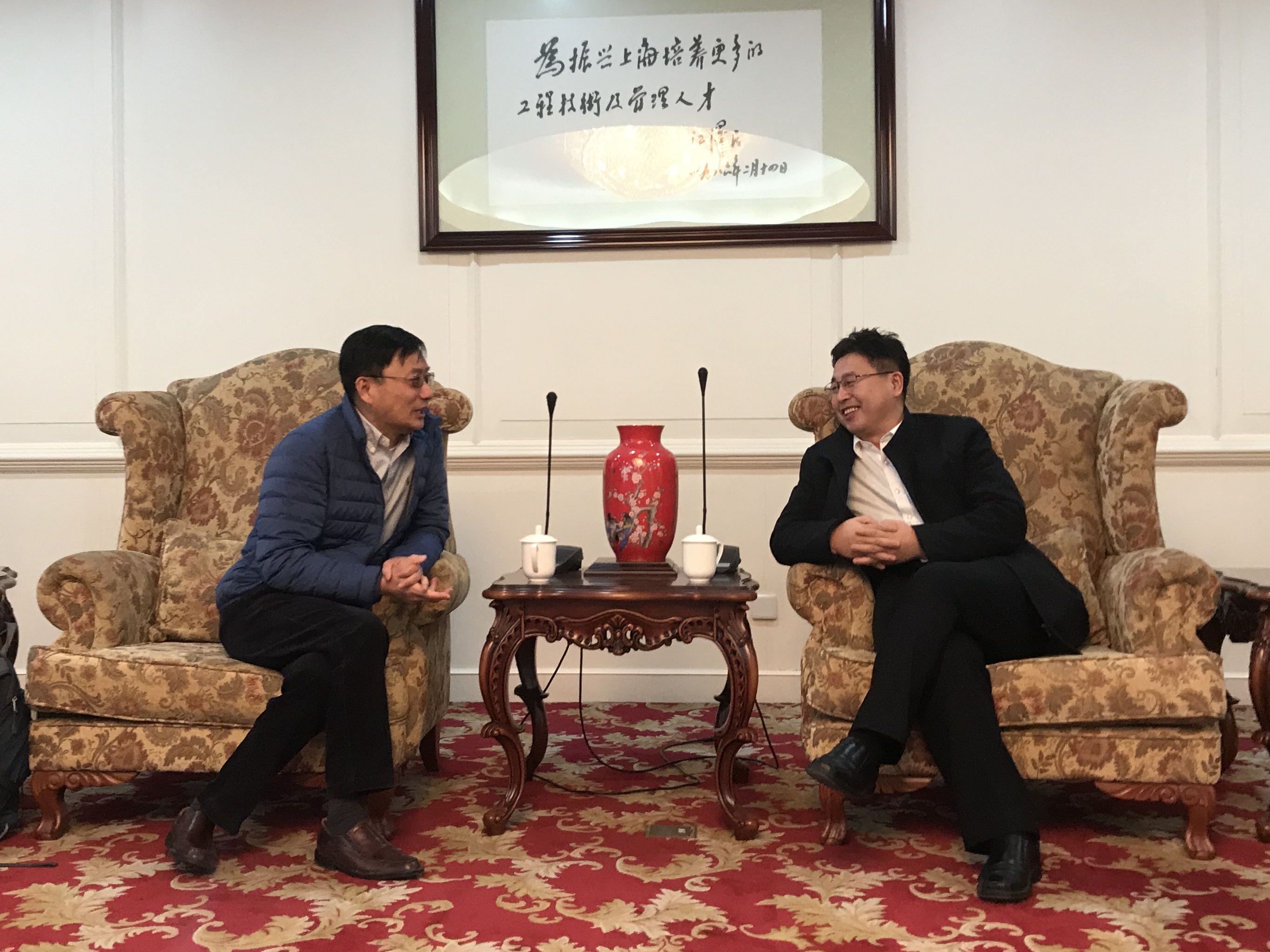 研讨会开始前,副校长王岩松与复旦大学陆伟跃教授在行政楼308进行了友好会谈。王岩松副校长感谢陆伟跃教授对学校药学学科建设的支持,期待能开展更紧密合作,建设特色鲜明的医药前沿技术研究院。