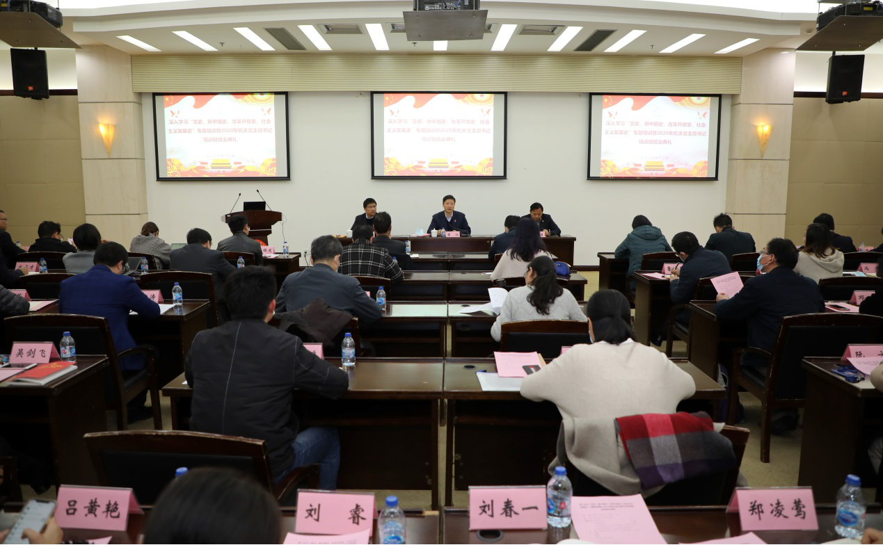 12月8日下午,深入学习“党史、新中国史、改革开放史、社会主义发展史”专题培训暨2020年机关党支部书记培训班结业典礼在图文信息中心第三报告厅举行。校党委书记李江,党委副书记、工会主席史健勇,校党委常委、组织部部长、机关党委书记朱洪春出席活动。机关党委委员、机关各支部书记、机关部(处)长、机关党支部委员、“人生导师”代表等参加本次结业典礼。结业典礼由朱洪春同志主持。