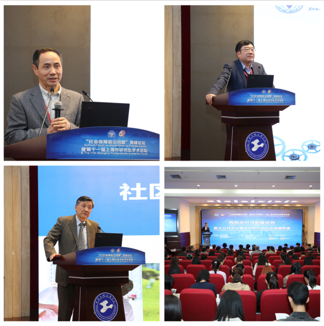 北京大学李玲教授,清华大学杨燕绥教授,中国社会科学院郑秉文研究员,上海交通大学鲍勇教授,民政部政策研究中心谈志林研究员,中欧国际工商学院院长、上海社会保障问题研究中心主任、上海工程技术大学社会保障学科带头人汪泓教授,中国建信养老金管理有限责任公司独立董事、原上海劳动和社会保障局副局长鲍淡如研究员,上海理工大学、上海社会保障问题研究中心副主任吴忠教授,武汉科技大学董登新教授,浙江大学米红教授,上海工程技术大学、上海社会保障问题研究中心副主任张健明教授,围绕“风险应对与制度优势——重大公共卫生事件中的中国社会保障制度”分别作了主旨报告。