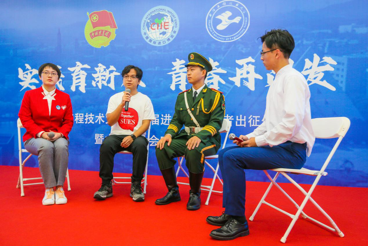10月26日上午,我校第三届进博会志愿者出征仪式暨大学生社会实践青春分享会在图文信息中心第三报告厅举行。校党委副书记、副校长朱晓青,党委组织部部长朱洪春,党委宣传部部长徐阳,松江团区委书记吕芳,校学生工作部、研究生工作部部长朱蓓,校团委书记董旖旎出席活动,各学院团委书记,110名第三届进博会志愿者以及新生代表参加活动。
