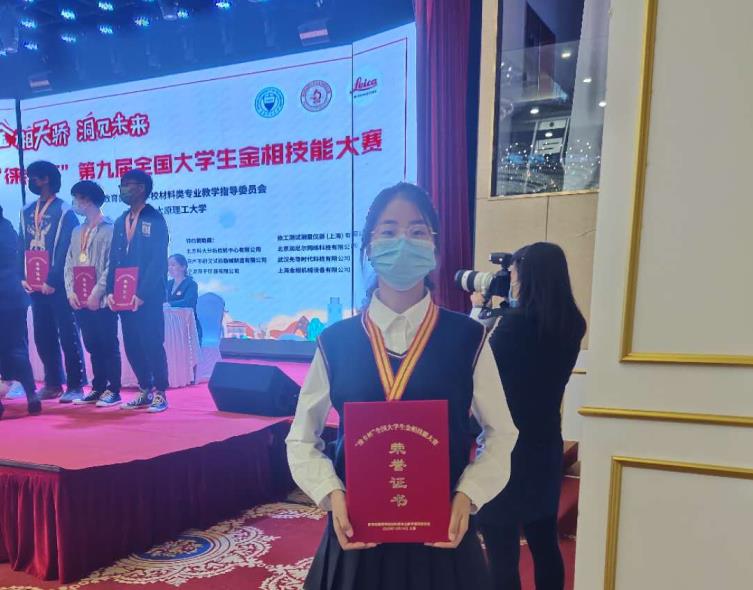 10月9日至14日,由教育部高等学校材料类专业教学指导委员会主办,太原理工大学承办的“徕卡杯”第九届全国大学生金相技能大赛在山西太原举行,我校材料工程学院马玉芳同学荣获一等奖,范祺彧同学荣获三等奖。