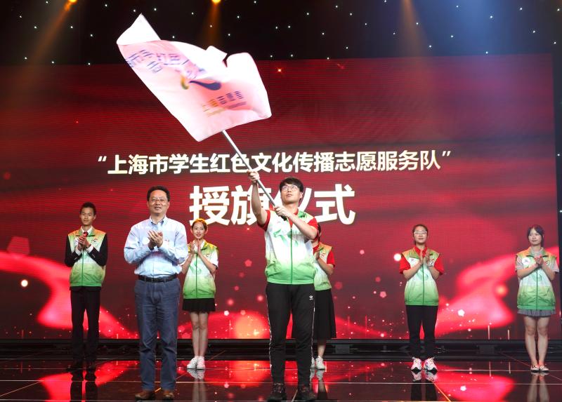 为更好地学习宣传贯彻习近平总书记给复旦大学《共产党宣言》展示馆党员志愿服务队全体队员回信精神,落实市委关于开展党史、新中国史、改革开放史、社会主义发展史学习教育的部署,引导大学生更加生动学习把握习近平新时代中国特色社会主义思想,让师生在学思践悟中坚定理想信念,在奋发有为中践行初心使命,努力为实现“两个一百年”奋斗目标、实现中华民族伟大复兴的中国梦贡献智慧和力量,7月17日,由上海市委宣传部指导,上海市文明办、上海市教卫工作党委、上海市教委共同主办,上海市志愿者协会、上海教育电视台协办的“学思践悟强信念 奋发有为报国行”——上海市学生红色文化传播志愿服务队成立暨上海学校红色文化传播育人联盟成立仪式在上海教育电视台举行。市委宣传部副部长、市文明办主任、市志愿者协会会长潘敏,市教卫工作党委副书记、市教委副主任、市志愿者协会副会长李昕等出席,校党委副书记、副校长朱晓青代表我校与中共四大纪念馆进行了首批校馆共建签约。