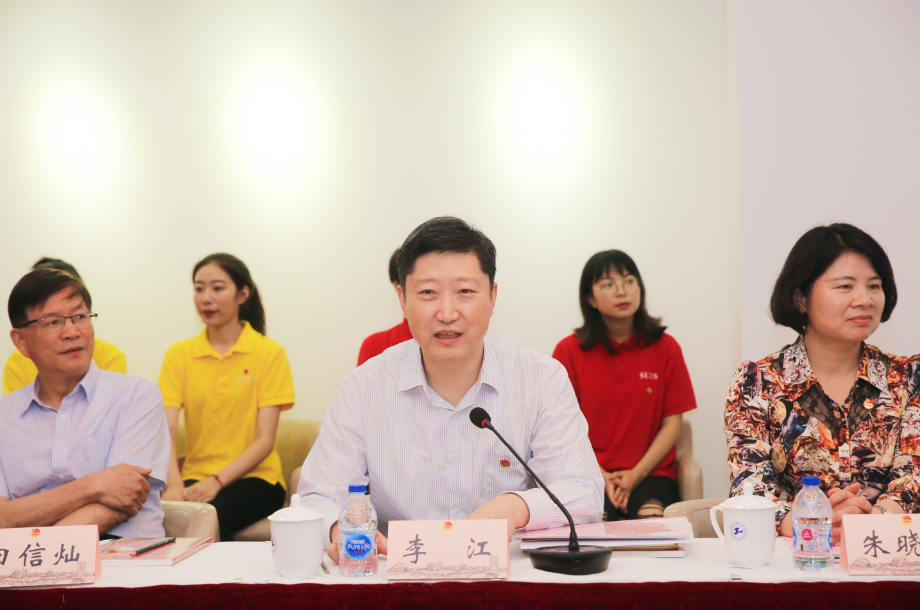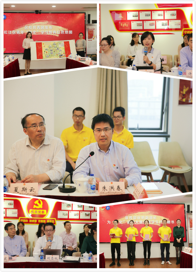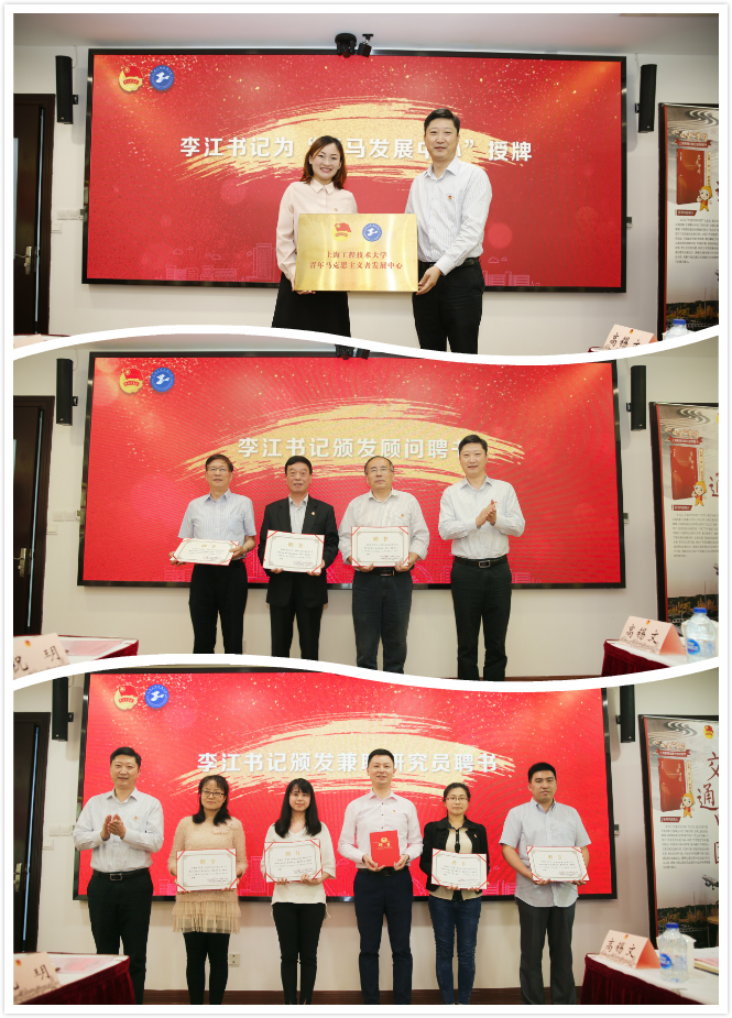 本次活动干货满满,校党委书记李江代表学校为新成立的上海工程技术大学青年马克思主义者发展中心授牌,并为首批顾问、兼职研究员颁发聘书;校党委副书记、副校长朱晓青为“青马工程”研学实践团授旗;党委常委、组织部部长朱洪春解读学校青年“四史”学习教育方案;区校共青团发布松江区青年“四史”学习教育红色地图;党委组织部副部长、党校常务副校长张可菡发布“青马纽扣讲堂”项目;马克思主义学院刘志欣院长介绍了“青马发展中心”情况;党委宣传部副部长祝玥为“四史”诵读大赛参赛学生代表赠书。