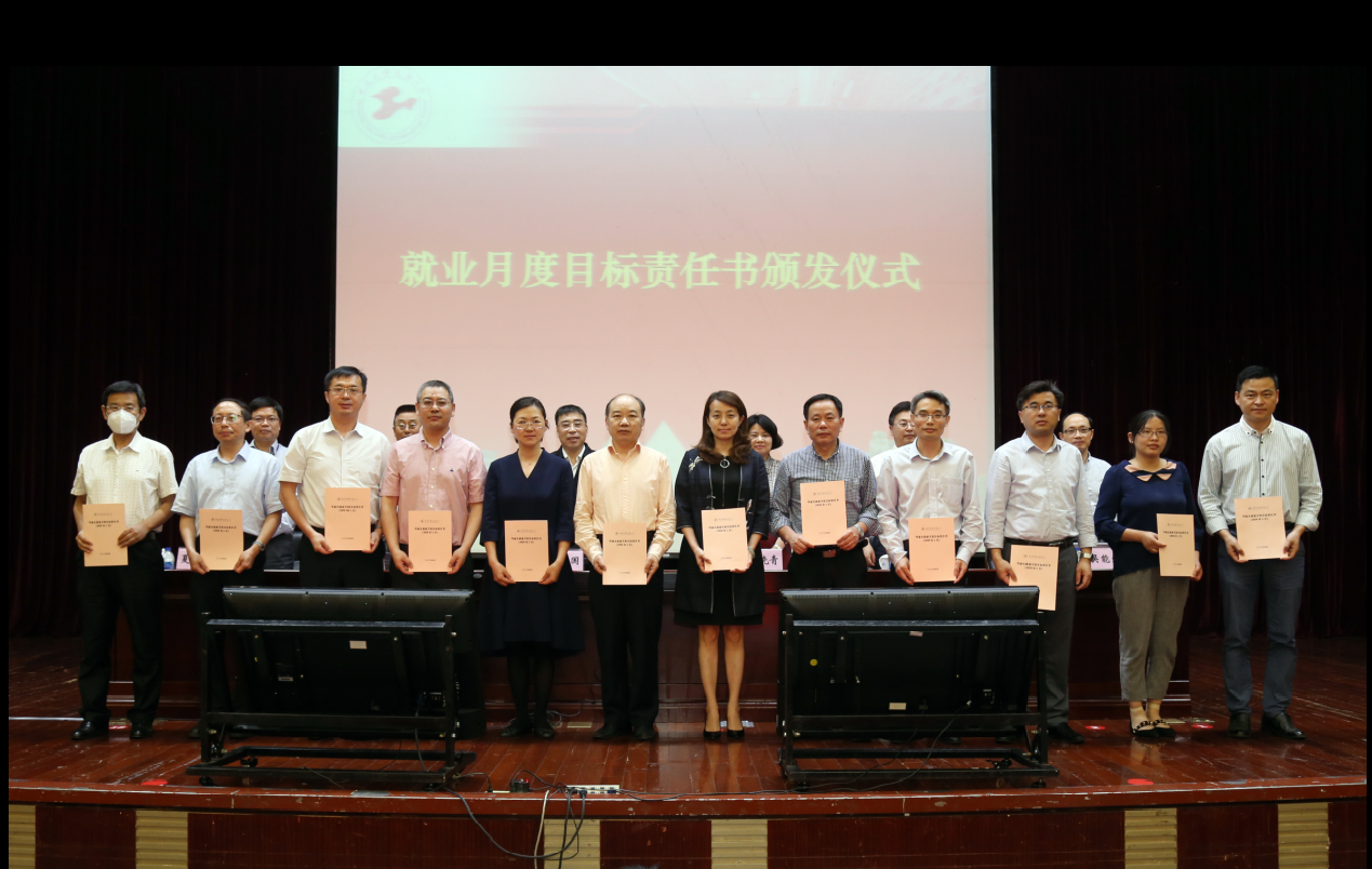 与会校领导和吴能武副处长为学院负责人颁发就业月度目标责任书,并启动了上海工程技术大学就业“百日冲刺”行动。