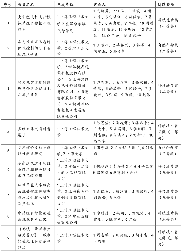 此次我校作为第一单位9项科技成果获奖,充分体现了其所在学科和团队的科研实力和水平,充分展现了我校科研团队的科技创新能力,也将进一步激励我校广大教师不断提升自身的科研水平,为全面推进我校科技成果创新、科技成果转化和上海科创中心建设做出更大的贡献。