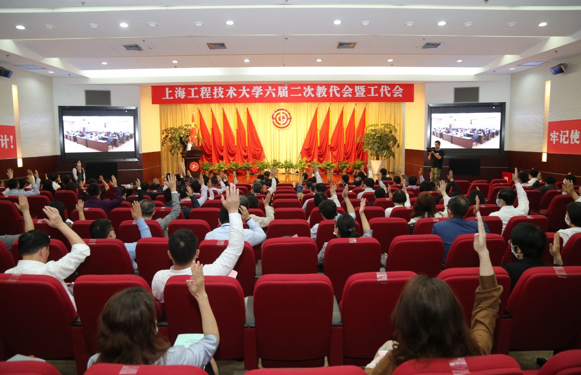会上,财务处副处长王锐、工会常务副主席柳如荣、发展规划处处长宓一鸣、人事处处长刘福窑分别作《2019年度学校财务预算执行情况和2020年度学校财务预算编制情况的报告》、《2019年工会工作报告》、《依法治校工作报告》、《上海工程技术大学教职工处分暂行规定》和《上海工程技术大学教师申诉管理办法(试行)》报告。