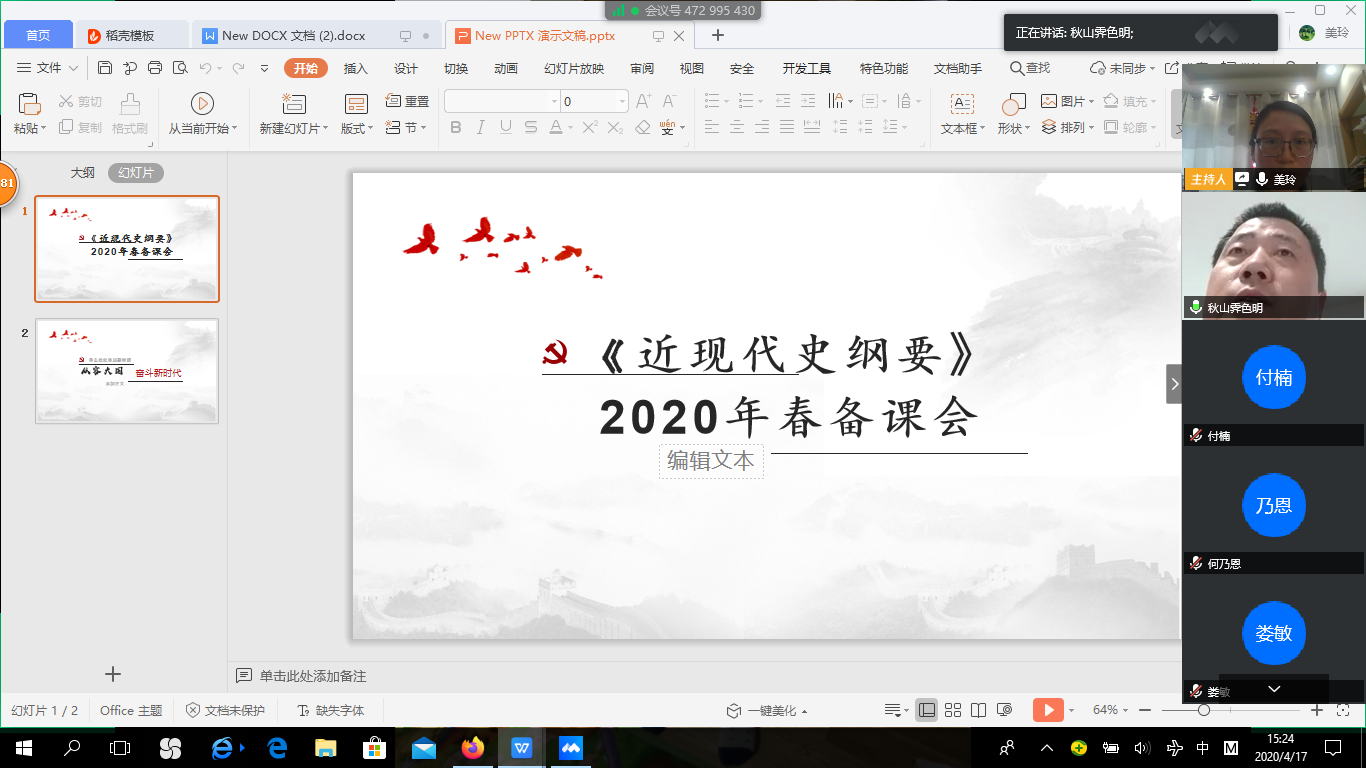 面对突如其来的新冠肺炎疫情,怎样通过网络讲好不一样的思政课?马克思主义学院通过集体备课研讨,形成了教学创新共识,即努力把疫情变为教材,将“疫情危机”转化为“教育契机”,加强理想信念教育。