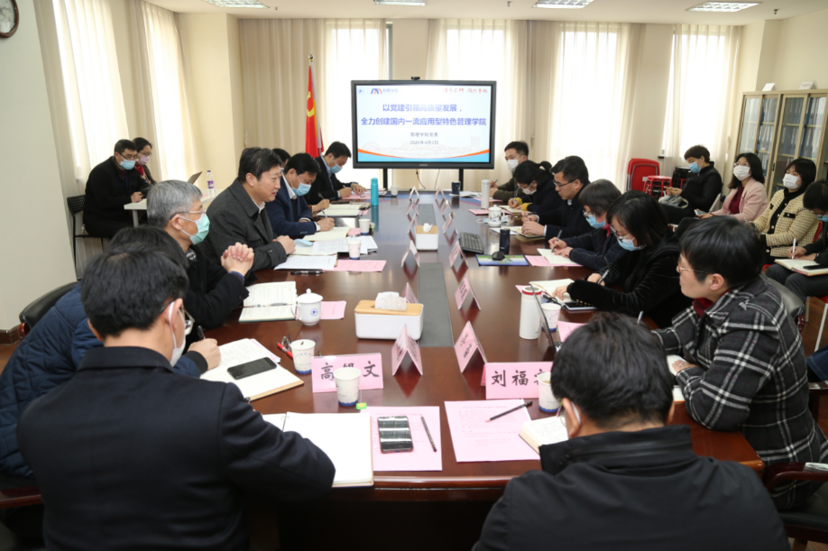 4月2日下午,李江书记带队来到管理学院调研,管理学院党政班子全体成员参加了调研。管理学院是学校学生数量最多的学院。目前,学院树立起“全力创建国内一流应用型特色管理学院”的发展目标,谋求传统经济管理领域的特色发展,丰富其“应用型”内涵,为服务学校转型发展助力。管理学院党委书记周洁代表班子作了工作汇报,院长胡斌对学院工作汇报进行了补充。
