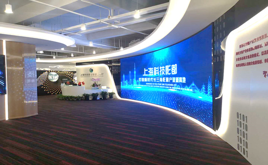 经过团队的不懈努力,800平方米的规划展厅如期投入使用,包括影都综合信息展示平台、科技影都交互历史屏、科技影都三维规划交互展示平台、影都规划弧幕电影、虚拟现实全景影片、VideoMapping数字内容、党建信息互动查询平台、VI视觉识别设计、墙面图文设计、导视系统设计和人员培训等,展厅以身临其境的体验方式展现上海科技影都的宏伟规划蓝图,以大数据构建影都决策辅助平台,充分体现了上海科技影都科创芯·世界窗的双核驱动理念,赢得了社会关注和主流媒体报道,为疫情重创下的影视企业重树发展信心。
