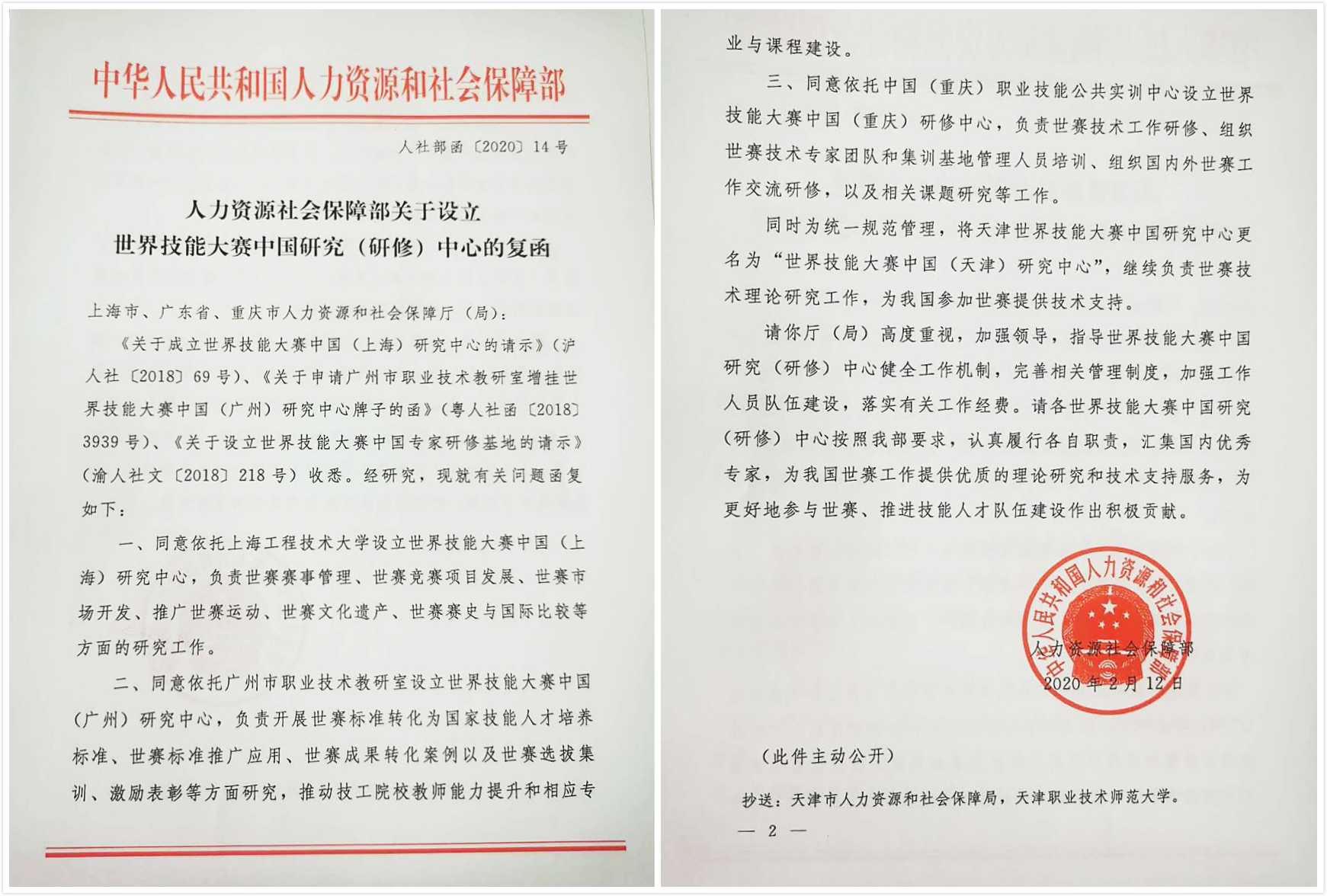 近日,国家人力资源和社会保障部发文批准依托上海工程技术大学设立世界技能大赛中国(上海)研究中心,负责世赛赛事管理、世赛竞赛项目发展、世赛市场开发、推广世赛运动、世赛文化遗产、世赛赛史与国际比较等方面的研究工作。同时要求研究中心按照人社部要求,认真履行职责,汇集国内优秀专家,为我国世赛工作提供优质的理论研究和技术支持服务,为更好地参与世赛、推进技能人才队伍建设做出积极贡献。