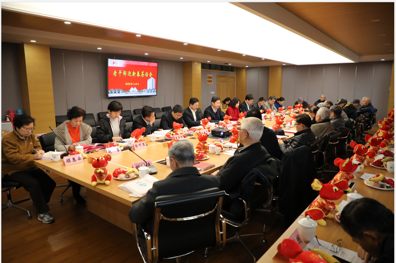 1月8日上午,学校在长宁校区科创楼725会议室举行2020年老干部迎新春茶话会。校党委书记李江,校党委副书记、副校长朱晓青,副校长王岩松、夏春明,党办、校办、组织部、离退休党工委、老干部办公室负责人与离休老干部、退休局级老领导、退休党支部书记们欢聚一堂,同迎新春佳节,共叙学校发展。迎新春茶话会由校党委副书记、副校长朱晓青主持。