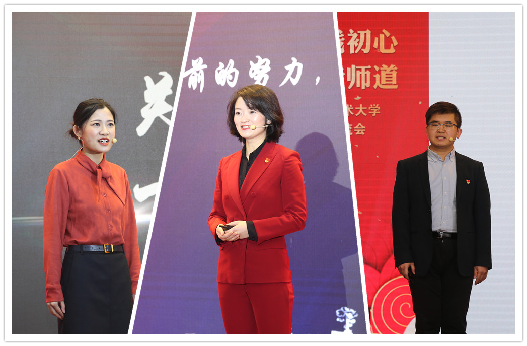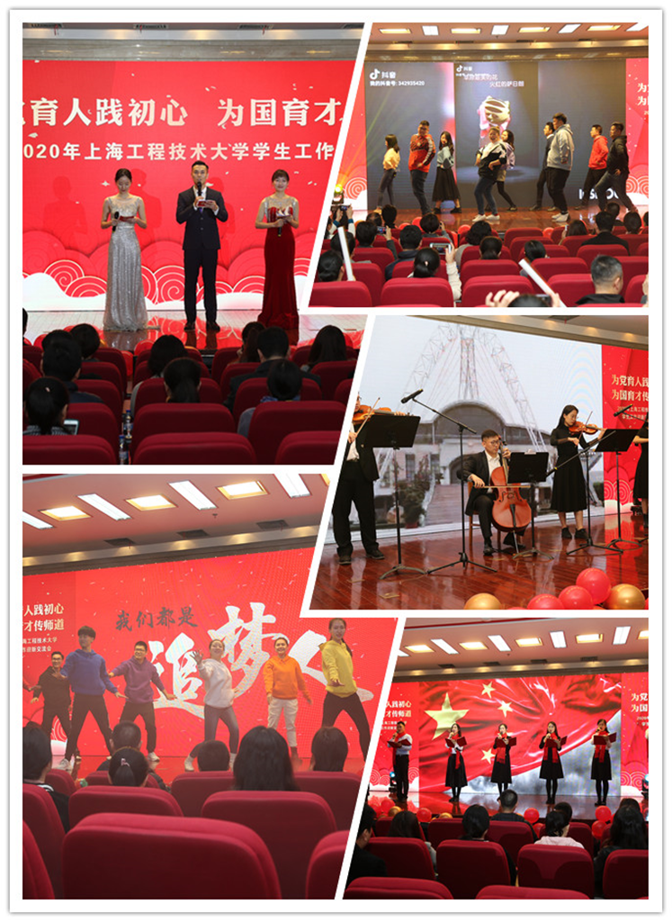 在风采展示环节,一段热情洋溢的《我们都是追梦人》开场舞蹈掀起了现场热烈的氛围。三位辅导员作了主题分享,梅文静老师的《守护你的梦想就是我的选择》讲述了用热爱和坚持打造“轨道交通中国说”讲师团的辛苦历程。赵梦影老师的《你好,形势与政策课》分享了“形势与政策”课三尺讲台上的责任和使命。张彬老师以《我热爱,我相信,所以我坚持》分享了在辅导员的陪伴和关心下一名学习困难生转变为双创之星的故事。姜剑等辅导员带来的乐器演奏《初心之音、使命之声》、虞抒叶等10名辅导员带来的重量级歌曲《工程大,我喜欢》、抖音神曲串烧以及刘艳红等7位辅导员带来的诗歌朗诵《不忘初心,做学生成长的引路人》等节目赢得了在场师生的热烈掌声,燃爆全场。