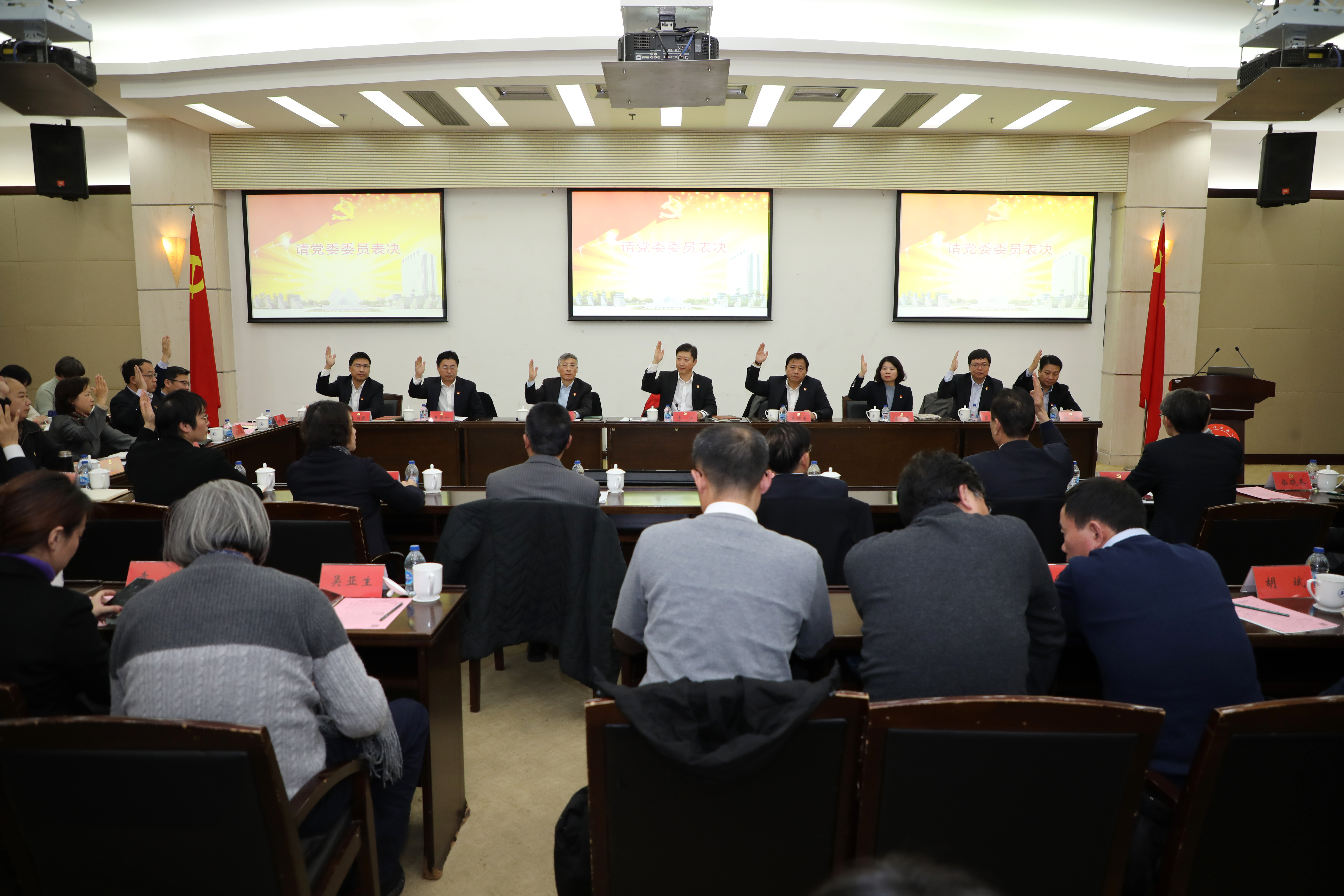 学校党委委员18人出席全会。非党委委员校领导、学校纪委委员、全体中层正职干部、离退休老同志代表、部分党代表、民主党派负责人、教代会代表、教授代表等列席全会。