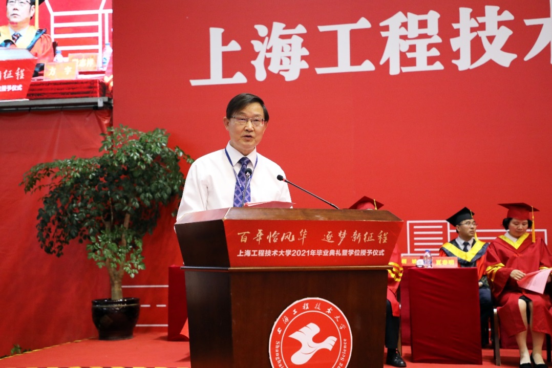 副校长夏春明宣读《上海工程技术大学学位评定委员会关于授予硕士学位、学士学位的决定》。