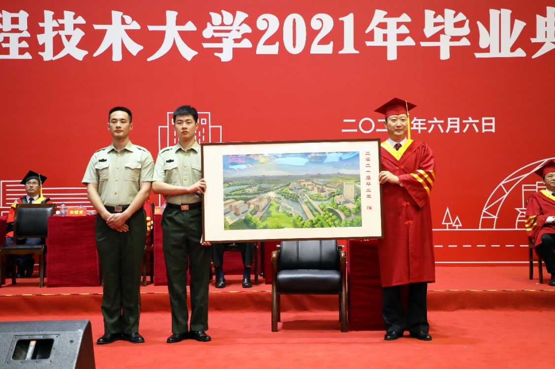 大学生艺术团带来了精彩纷呈的表演。舞蹈《青春恰时来》、管乐合奏《送别》《我的未来不是梦》,为毕业生们送上临别的真情祝福;歌曲联唱、校歌合唱《前进吧工程大》让大家重温了在工程大的青春记忆以及奋斗岁月;毕业视频《以梦为马,不负韶华》,鼓励毕业生坚持不懈、顽强拼搏,用奋斗写下无悔的青春回忆。