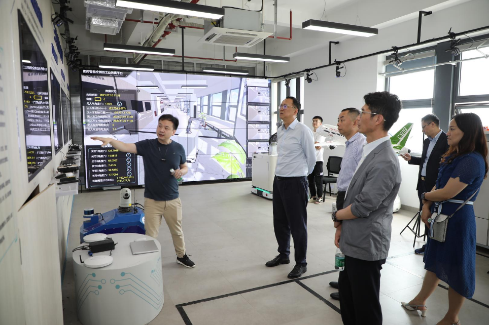 外高桥集团一行参观调研了我校电子电气工程学院、中韩多媒体设计学院、航空运输学院和纺织服装学院部分实验室。