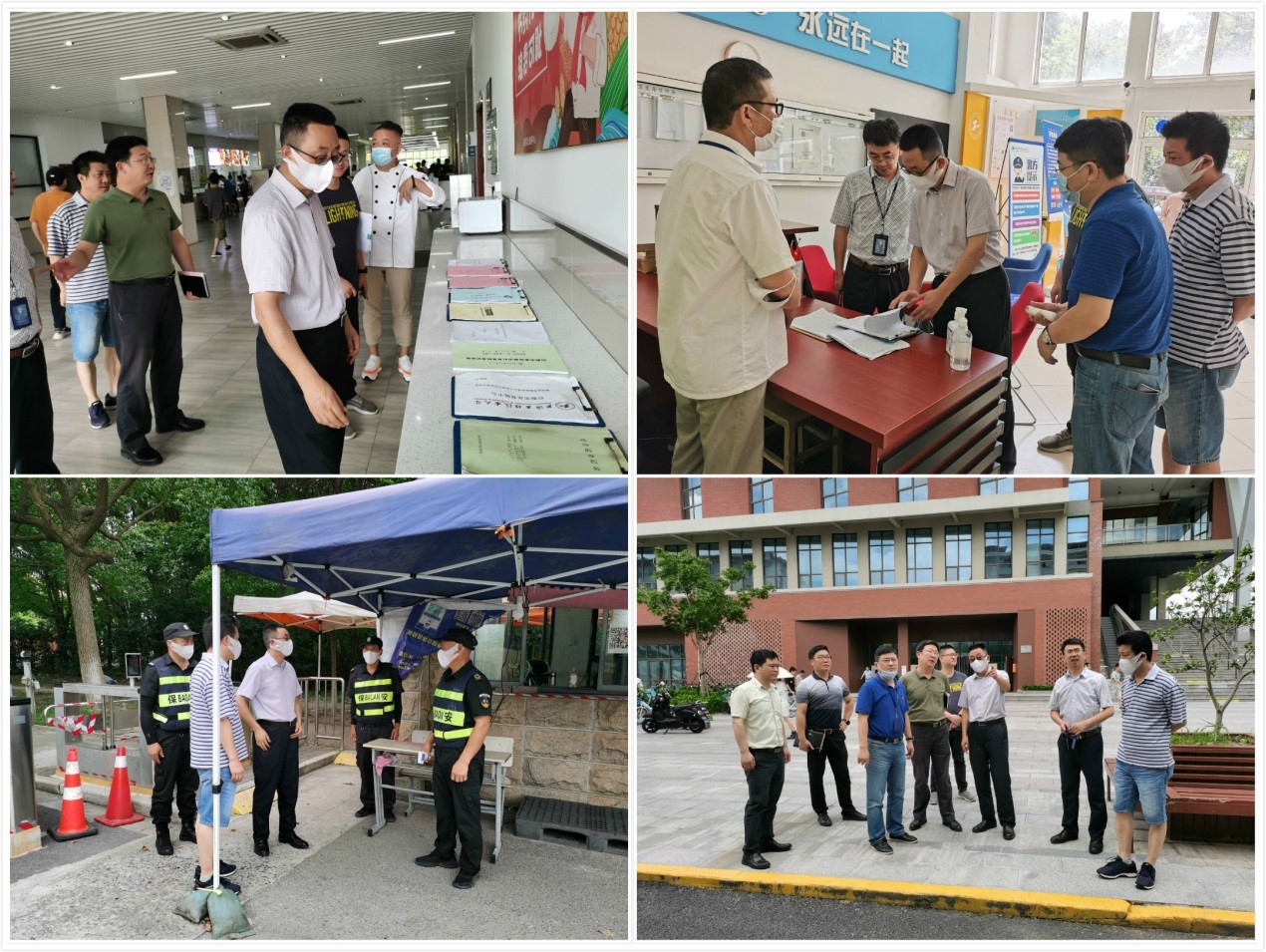 会议结束后,副校长姚秀平率领疫情防控工作小组成员开展了实地检查,对校园大门、宿舍大门、临时留观区、学生宿舍、食堂等重点区域一一检查,指导工作。要求大家要坚守岗位,履职尽责,把每一项防控举措都落实到位,确保师生和校园平安。