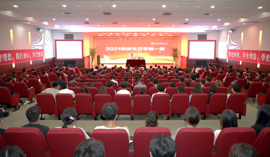 9月30日,上海工程技术大学2021级新生“开学第一课”在图文信息中心第二报告厅举行,校党委书记李江为新生讲授题为《赓续百年建党精神,勇于担当强国使命》的第一课。校党委副书记、副校长朱晓青,相关职能部门、学院负责人,各学院党委(党总支)副书记及2021级新生共同聆听学习,此次“开学第一课”由校党委副书记、副校长朱晓青主持。