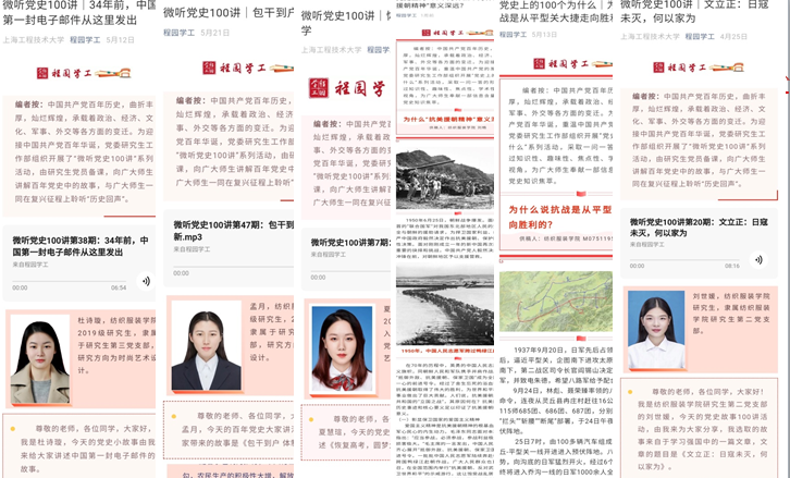 突破校园圈层,党史教育入社会。纺织服装学院的党员们深知党史学习不能仅仅在校园展开,应该让更多的人了解中国共产党百年历程,让更多的人了解中国共产党为什么“能”、马克思主义为什么“行”、中国特色社会主义为什么“好”的道理,有的党员给社区治安管理人员讲党史,有的党员给自己的家人讲党史,部分在国外学习的学生党员给外国友人讲党史。青年援疆干部董海宇更是以自己的实际行动向组织汇报了党史学习教育成果,远在边疆,他克服种种困难,尽自己最大的能力给边远学生因材施教,增强他们爱党爱国的情感。纺织服装学院的党史学习教育不仅在线下开展,微听党史100讲、B站讲党史等线上节目也是如火如荼。