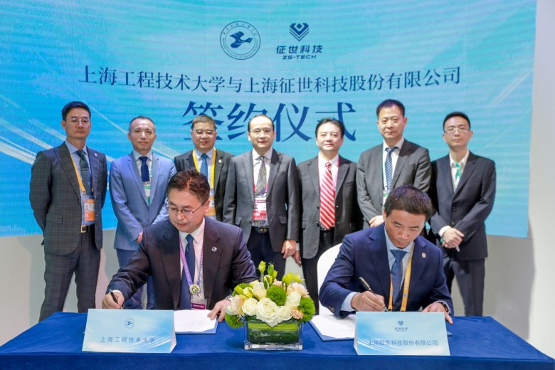 11月6日, 我校与上海征世科技股份有限公司战略合作签约仪式在第四届中国国际进口博览会现场举行。校长俞涛,副校长王岩松,青浦区政协副主席顾啸流,征世科技总经理朱长征、副总经理满卫东等出席签约仪式。