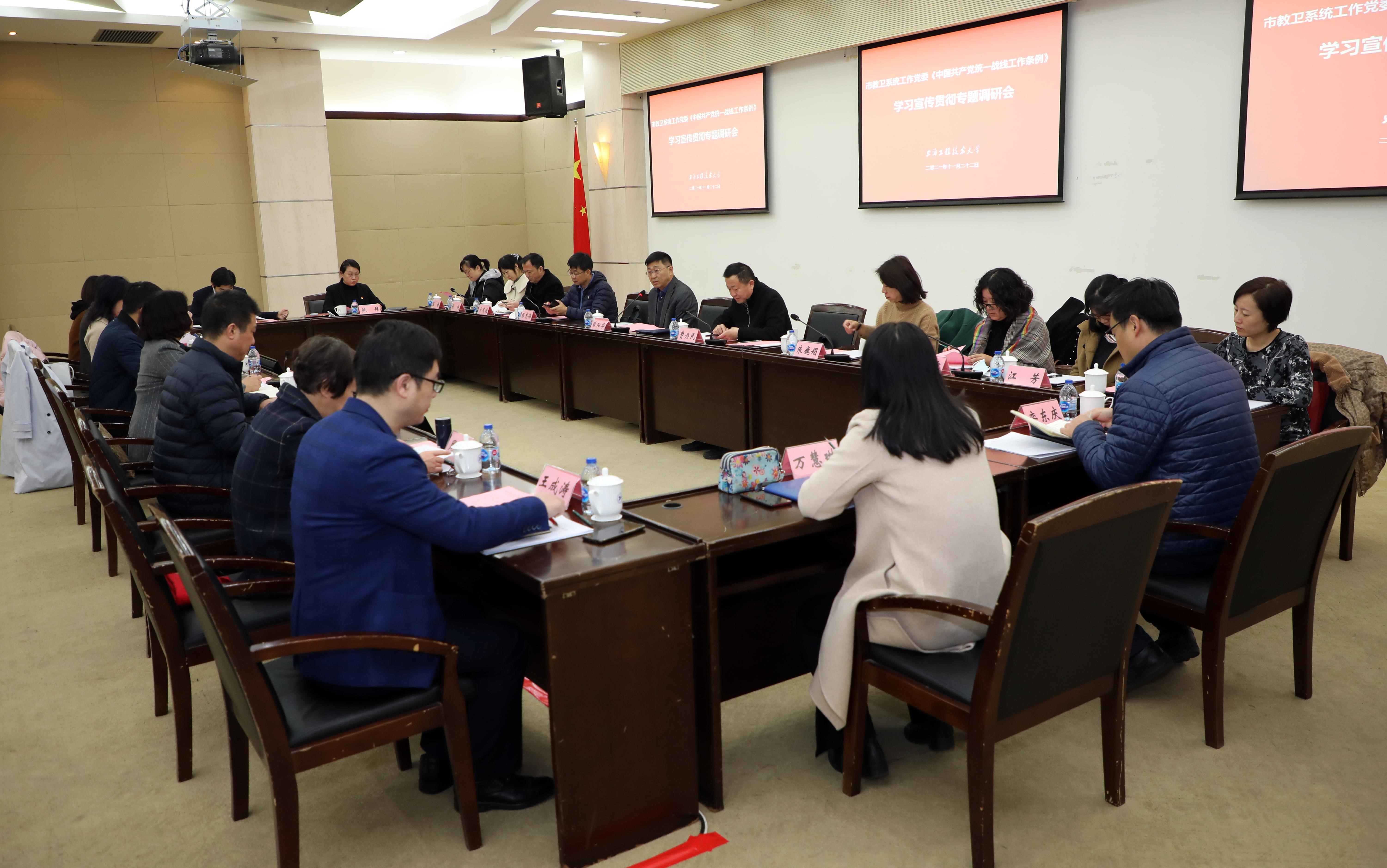11月22日上午,市教卫党委系统学习贯彻《中国共产党统一战线条例》第七调研组由组长、上海大学党委副书记欧阳华带队莅临我校开展专题调研。校党委书记李江接待了专题调研组。校党委副书记、副校长朱晓青,党委常委、组织部部长、统战部部长朱洪春,统战工作领导小组成员单位负责人及党外代表人士参加了调研,调研会由组长欧阳华主持。