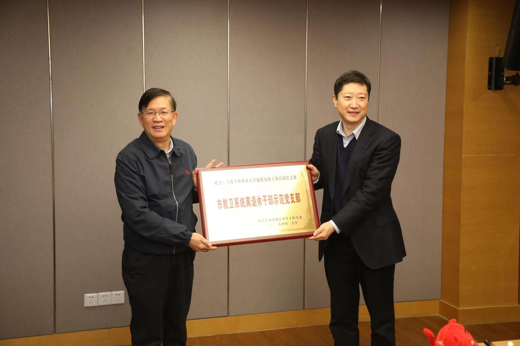 会上,李江书记为荣获“2020—2021年度市教卫系统离退休干部示范党支部”授牌。