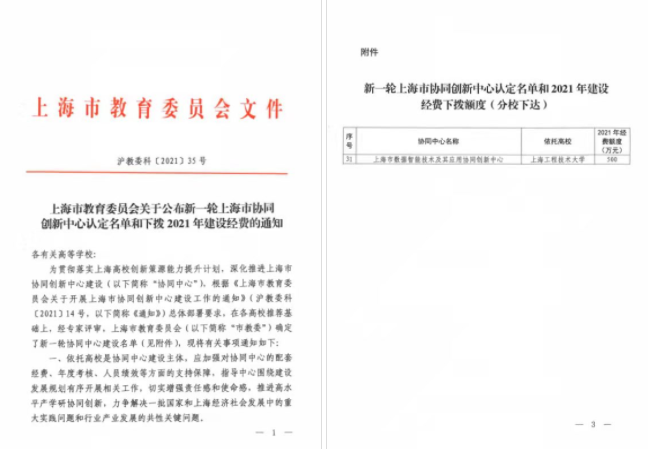 近日,上海市教委公布了前沿科学研究基地认定名单和新一轮协同创新中心认定名单,我校电子电气工程学院牵头申报的上海市数据智能技术及其应用协同创新中心获批立项,建设周期为五年。