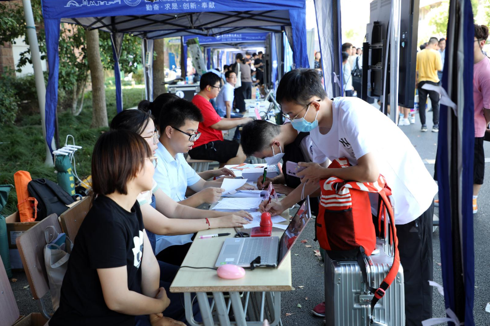 “欢迎你,新工程大人!”一早,学生志愿者、保安就已在校门口等候,热情迎接新同学们。新生们在线上系统完成注册报到流程,家庭经济困难的学生通过“绿色通道”完成入校,现场查看健康码、检测体温、查看核酸检测证明,志愿者帮助新生搬运行李,宿管阿姨帮助新生熟悉报到流程……现场有条不紊、秩序井然。为保证整个迎新工作安全、有序、便利,党办、校办、学工部、团委、信息办、保卫处、后勤等相关职能部门精心部署新生报到工作,各部门通力合作确保各项工作的顺利开展。各学院迎新咨询处早已准备就绪,相关工作人员和志愿者们笑容满面、以心迎新,热情周到的服务让新生倍感安心。