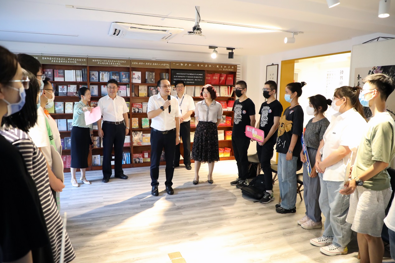 在校园书店“钟书阁”,校党委副书记、校长俞涛向新生代表赠予“程园福袋”,希望同学们尽快适应环境,努力学习,增强本领。并与无法按时报到的中高风险地区学生进行连线互动,倾听同学心声,叮嘱大家做好自我防护,妥善安排好学习生活。