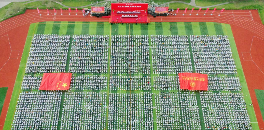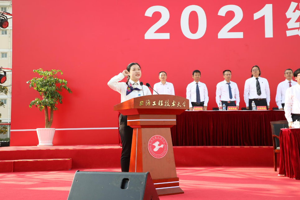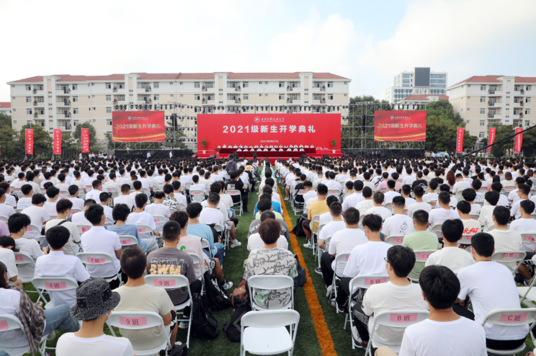 9月27日上午, 2021级新生开学典礼在松江校区东体育场举行,6716名新同学汇聚一堂,共同迎接即将开启的人生新征程。全体校领导出席开学典礼。校友代表、特邀嘉宾、上海国际港务(集团)股份有限公司党委副书记、董事、总裁严俊,我校相关职能处室负责人、各学院党政领导、教师代表以及2021级研究生、本专科、预科新生参加典礼。校党委副书记、副校长朱晓青主持典礼。