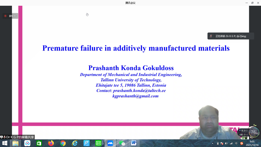 大会主旨报告环节,来自印度塔林理工大学的Prashanth Konda Gokuldoss教授、上海大学张久俊院士、韩国昌原国立大学宋正日教授,韩国海洋大学赵宗来教授,英国伦敦大学学院Ivan P. Parkin教授和Dan J.L. Brett教授等11位专家分别围绕“增材制造中的早期失效”“二氧化碳电催化还原”“环保防火复合材料”“锂离子电池热损耗有限元模拟”“先进水裂解电催化剂”等学术热点问题作了精彩的报告,超过200名观众在线共享学术盛宴。