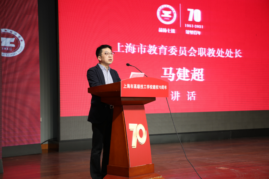 纪念大会上,上海市职业教育协会会长马树超、上海市教育委员会职教处处长马建超在讲话中充分肯定了学校建校70年来的办学成就,并对学校未来发展寄予殷切期望。