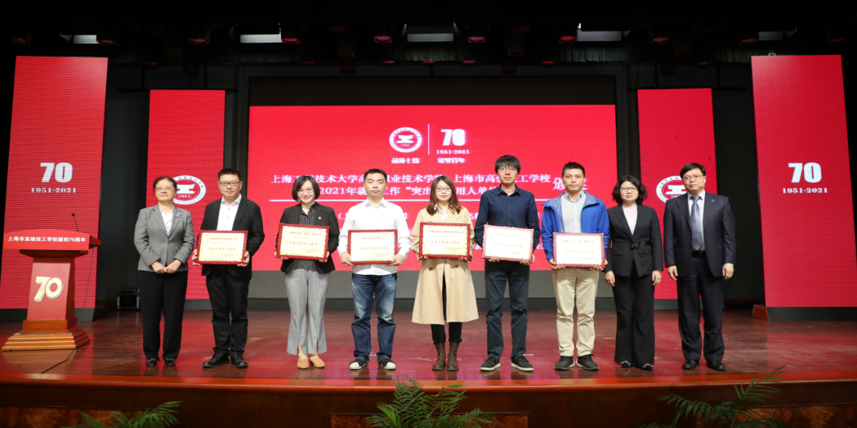 颁奖领导、嘉宾为上海市安装工程集团有限公司等6家2021年就业工作“突出贡献用人单位”颁奖。