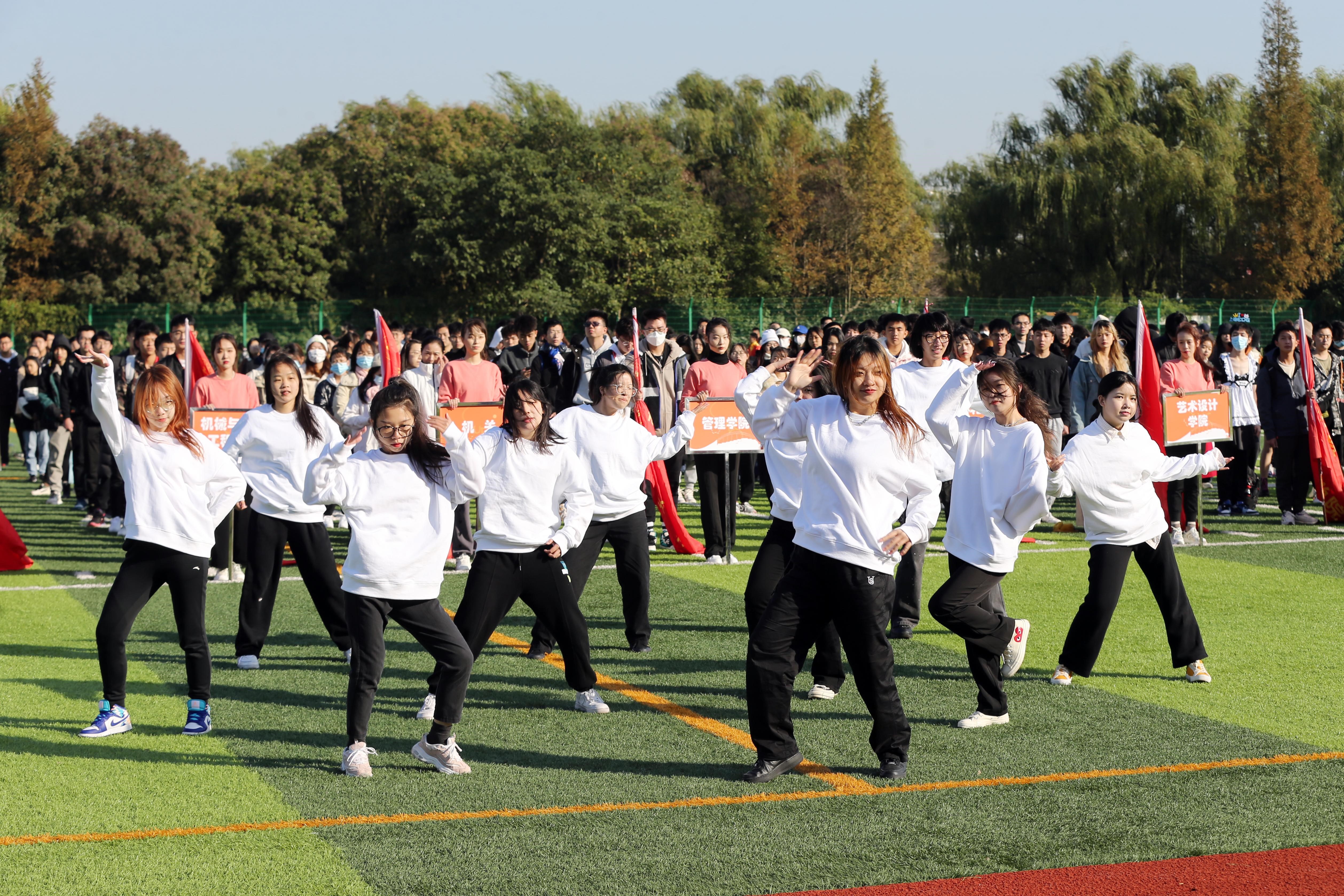 为全面贯彻党的教育方针和《关于全面加强和改进新时代学校体育工作的意见》《全民健身计划(2021—2025年)》,认真落实《高等学校体育工作基本标准》的相关要求,充分发挥体育在建设健康校园、促进师生健康方面的独特作用,满足广大师生的体育健身需求,不断提高广大师生的身体健康水平,11月10日上午,以“百年征程谋复兴,美丽程园趣健身”为主题的运动会在学校东体育场开幕。校长俞涛,校党委副书记、副校长、校体委会主任朱晓青,相关职能部门和二级学院主要负责人,以及师生代表参加了开幕式。开幕式由体育教学部党总支书记王振钧主持。