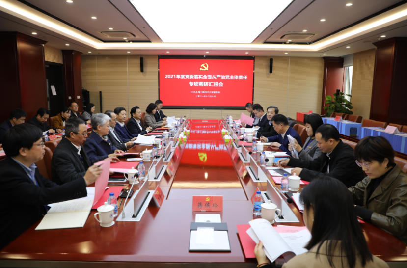 1210日,市教卫工作党委2021年度落实全面从严治党主体责任专项调研第一组来校调研学校党委落实全面从严治党主体责任情况。调研组由组长、上海视觉艺术学院党委书记吴嘉敏,副组长、市教卫工作党委办公室主任罗立刚及教卫系统有关专家组成。学校领导班子全体成员,党办、纪委(监察专员办公室)综合办、教师工作部、学生工作部、工会、团委等职能部门负责人参加座谈、检查。