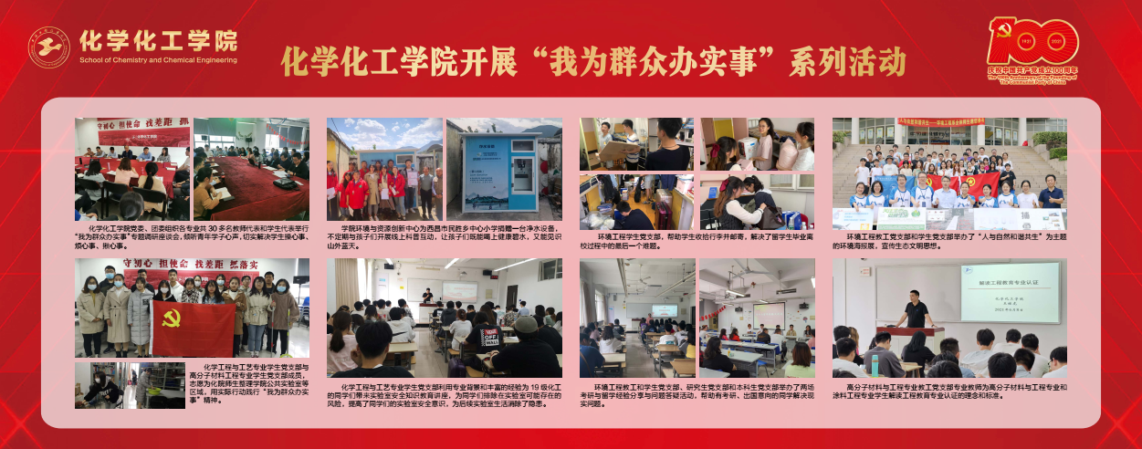 2021年,化学化工学院党委以习近平新时代中国特色社会主义思想为指引,深入开展党史学习教育和“建党百年”系列活动,坚守立德树人初心,践行为党育人、为国育才使命,贯彻落实学校发展“三大战略”,扎实推进学院转型发展,各项事业取得长足进步,实现了“十四五”的良好开局。