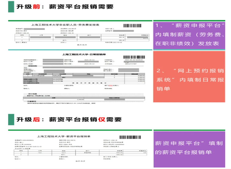 财务处通过反复论证、充分调研,对原有的报销业务模式和操作方法进行了创新优化,将薪资平台和报销单合二为一,既提升了师生使用体验感,又提升了财务工作的准确率和效率。